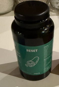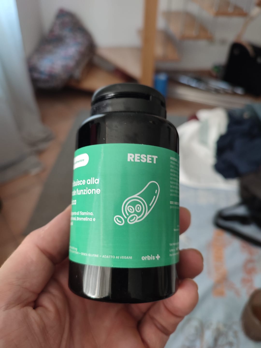 RESET contiene Bromelina (2500 GDU/g) da gambo di Ananas (Ananas comosus (L.) Merr.); agente di rivestimento: idrossi-propil-metilcellulosa (involucro della capsula); Boswellia (Boswellia serrata Roxb. ex Colebr.) estratto secco gommo-resina tit. al 65% in acidi boswellici; Curcuminoidi (da Curcuma longa L.); emulsionante: lecitina di girasole; estratto secco di corteccia di pino (Pinus sylvestris L.) tit. 90% in proantocianidine; agente di carica: cellulosa; estratto di soia fermentata tit. attività nattokinasica (20.000-28.000 FU/g); agente antiagglomerante: sali di magnesio degli acidi grassi; cloridrato di tiamina (Vit. B1).