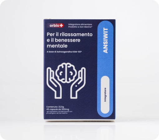 ANSIWIT contiene KSM-66® [Ashwagandha (Withania somnifera (L.) Dunal) radice estratto secco tit. al 5% in withanolidi]; L-teanina; agente di rivestimento: idrossi-propil-metilcellulosa (involucro della capsula); Giuggiola (Ziziphus jujuba Mill.) semi estratto secco tit. al 2% in saponine triterpeniche; Magnolia (Magnolia officinalis Rehder & Wilson) corteccia estratto secco tit. al 50% magnololo; agente di carica: cellulosa; agente antiagglomerante: sali di magnesio degli acidi grassi; piridossina cloridrato (Vitamina B6); Lavanda (Lavandula angustifolia Mill.) olio essenziale.